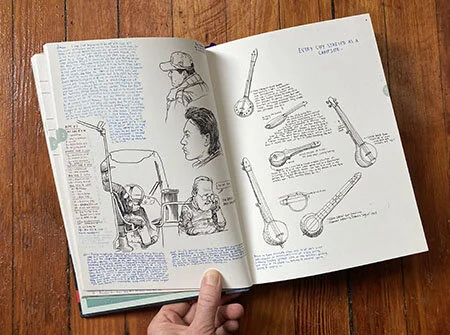 A friend who’s been a huge supporter of the Sustainable Journaling Workshop gave me The Acme Novelty Date Book, a collection of facsimiles of the journal pages of cartoonist, Chris Ware. I’m reticent about sharing images of beautifully journal pages rendered by people with great penmanship, drawing or crafting skills because I don’t want people interested in journaling to be intimidated if they don’t feel that they’re creative or don’t feel good about their handwriting. But I thought I’d share an example of his journaling style because I love the messy, organic quality of his arrangement that results from him sketching first then conforming the text to the drawings.