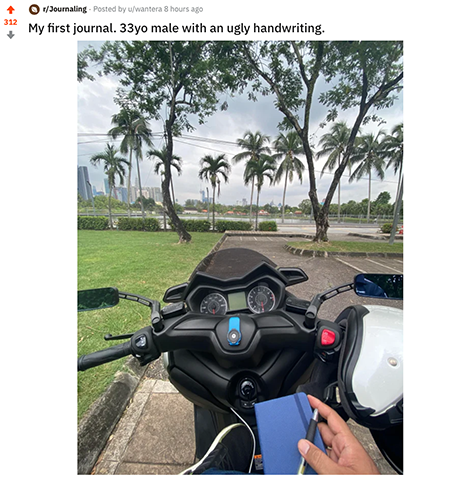 It’s been great seeing what’s shared by the journaling community on Reddit. I appreciated this post by Iwan who was nice enough to give me permission to share it. He gets the fact that you don’t need a desk or good handwriting to write an entry. Thanks again, Iwan.